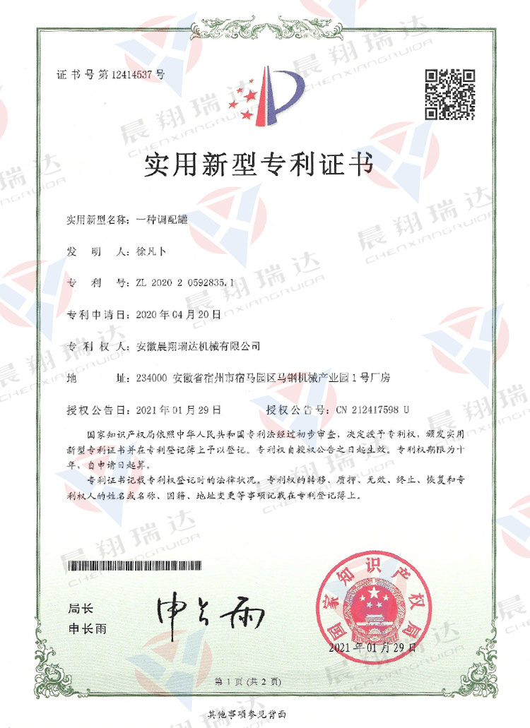 安徽晨翔瑞達機械有限公司(以下簡稱公司),創(chuàng)建于1997年,是一家專注于制藥機械設備、果酒醋生產線設備、調味品生產線設備、飲料生產線設備、豆制品生產線設備、乳食品生產線設備、農林牧副漁產品深加工生產線設備、動物寵物飼料生產線設備、生化反應設備、衛(wèi)生級流體成套設備及通用機械研發(fā)、制造、銷售于一體的高新技術民營企業。產品涵蓋食乳品、飲料、制藥、化妝品、生物工程、油脂、涂料、化工、精細化工等領域的衛(wèi)生級系列不銹鋼罐槽容器的制造,如雙效濃縮器、不銹鋼攪拌罐、電加熱反應釜、不銹鋼攪拌罐、冷熱缸、老化缸、沉淀罐、配…